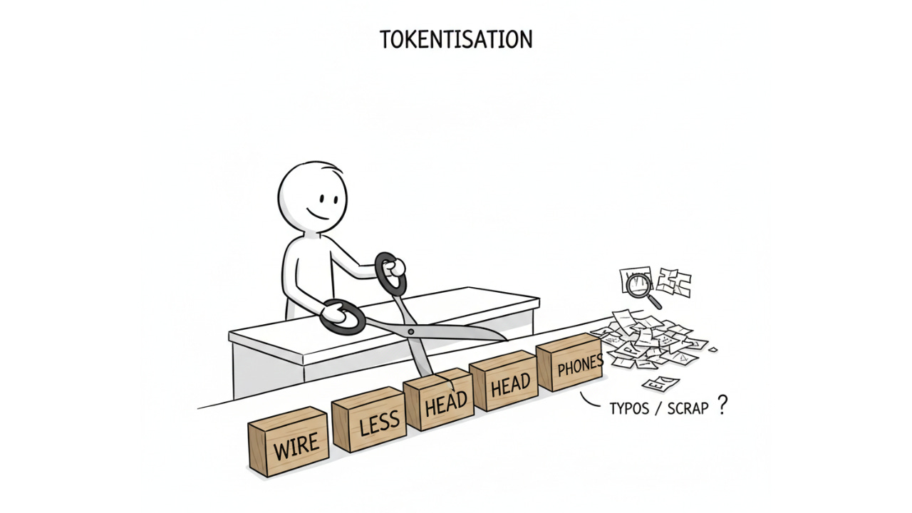 If a user searches for wireless headphones the system might break this into tokens like wire less and head phones. This allows the model to understand the relationship between wireless and other words containing wire or less helping it provide more accurate results even if the user makes a typo.