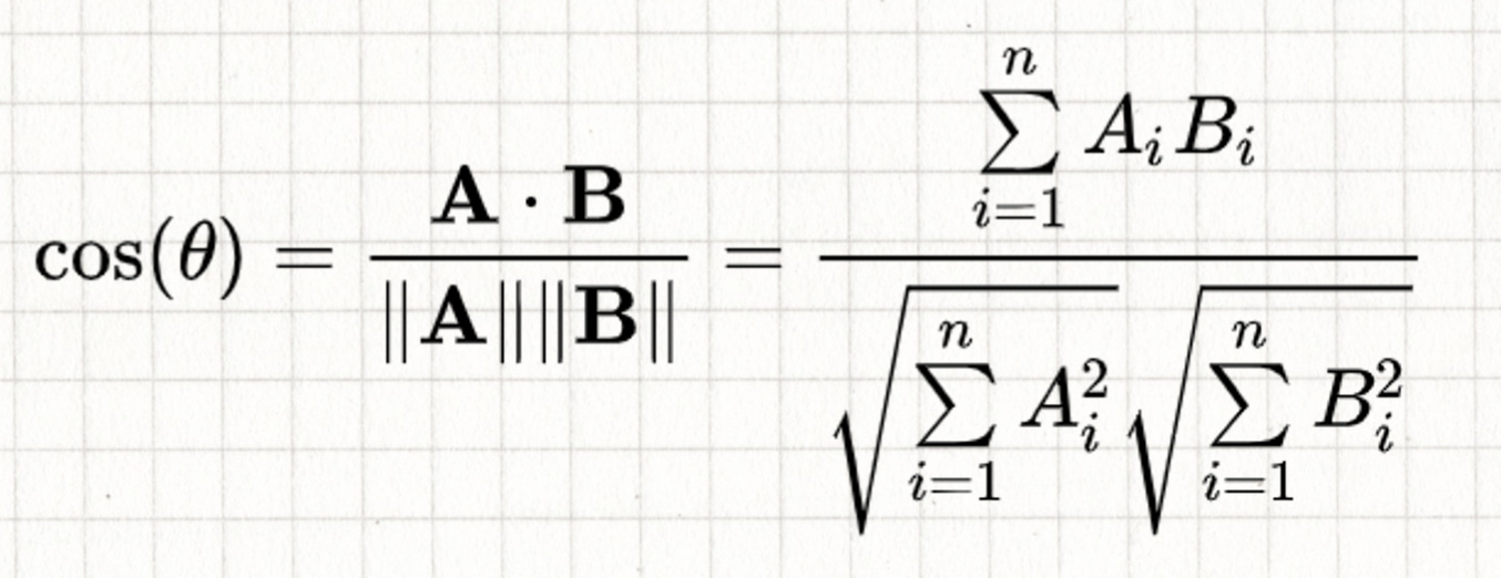 One of the most common distance metrics we discussed is cosine similarity.