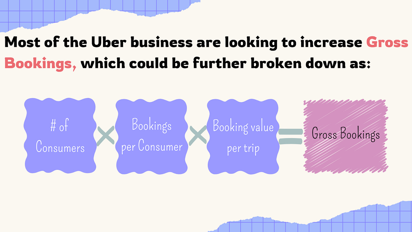 Now that we know how we can break down the gross booking number, which is the north star metric of Uber, let’s spend some time to understand how Uber can finetune different components to achieve a higher Gross Bookings number YoY.