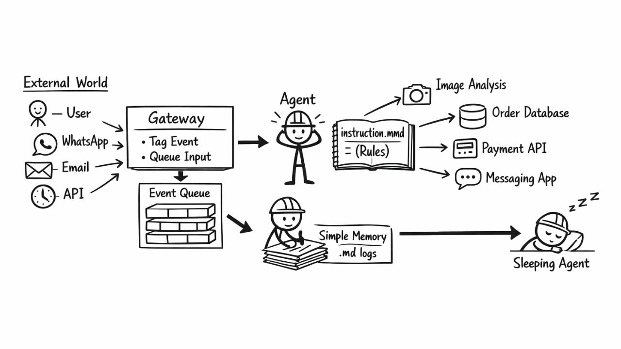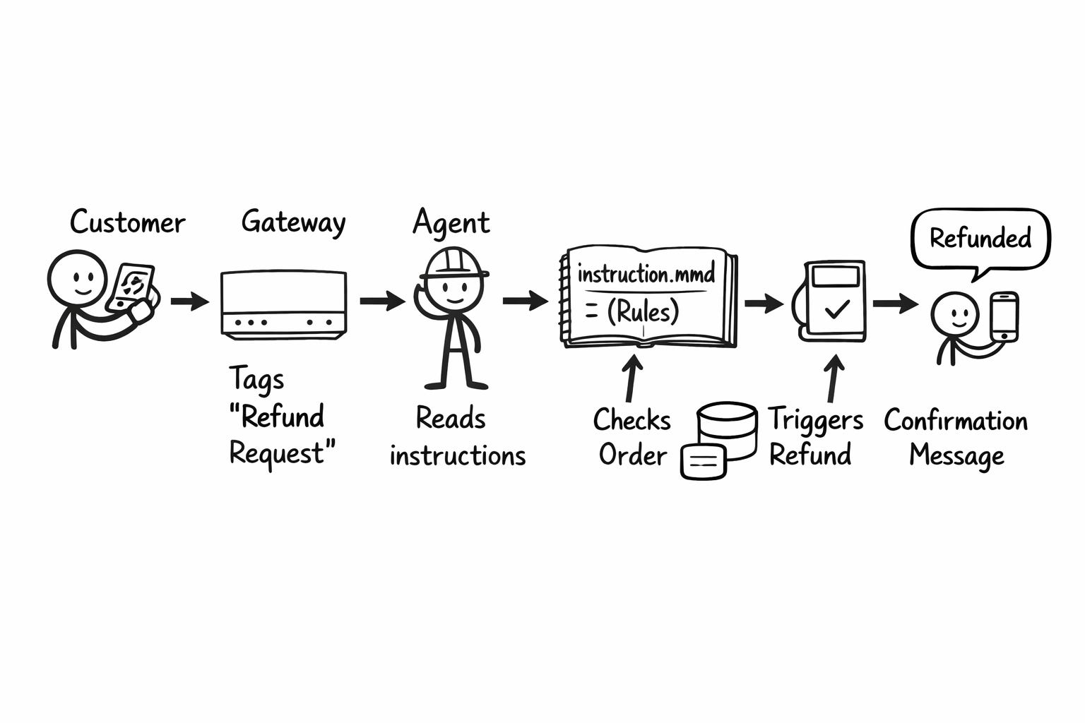 It stays asleep to save resources until the Gateway hands it a task. When it wakes up, it reads a file called instruction.mmd. This is its rulebook. It tells the agent exactly how to behave in that specific moment.