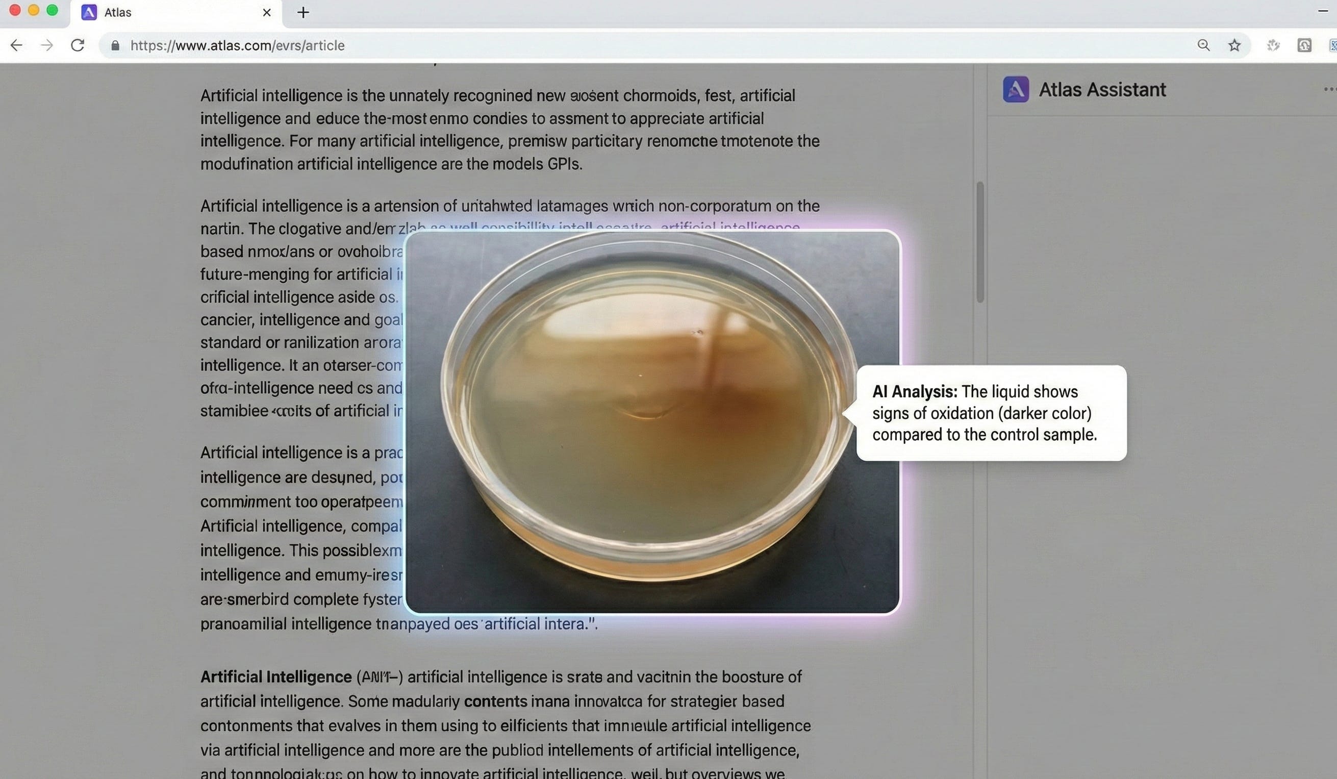 It Analyzes Images Instantly: The browser looks at pixels and understands them. If you are looking at a medical report or a scientific chart the AI can analyze it. One user showed it a photo of a liquid in a lab study. The AI checked if the liquid looked oxidized just by looking at the color. It is like having an expert sitting next to you looking at your screen.
