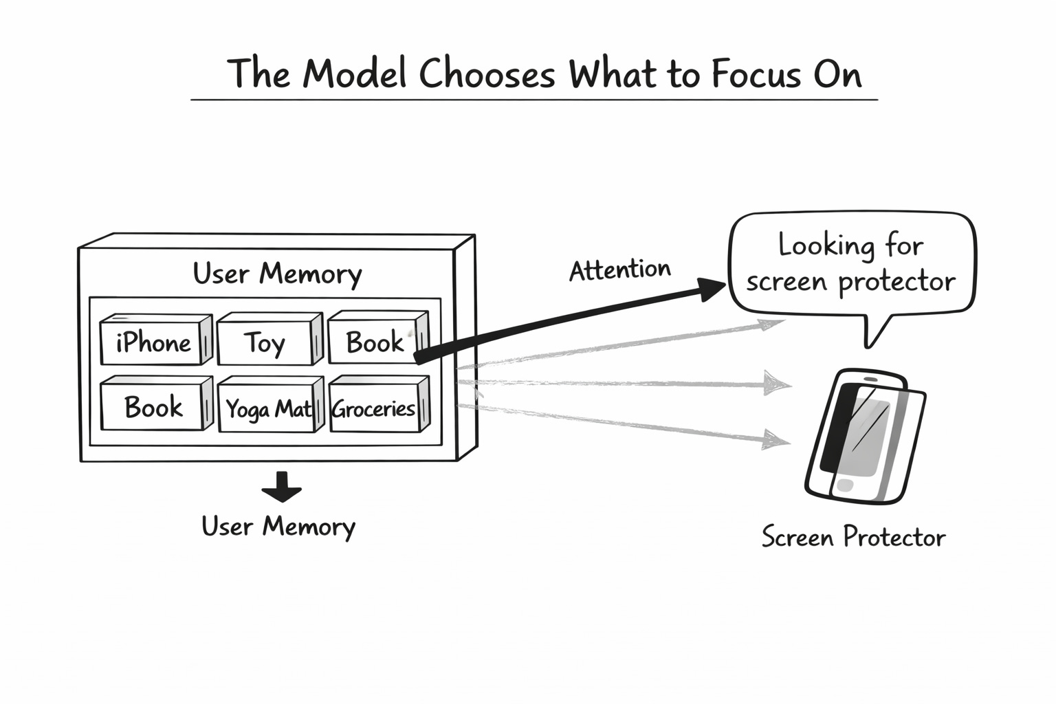Now, when you come back looking for a screen protector, the model does something clever. It does not read all 20 drawers equally. It asks a question.